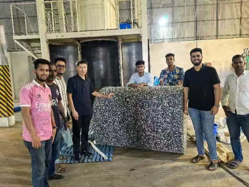 Our company successfully set up high density rebonded foam machine for making Maximum density round foam block of 280D in Chittagong, Bangladesh, at the same time, the heavy duty peeling machine is also very successful in Bangladesh, it is controlled by PLC and can cut 280D rebonded foam block.![]()